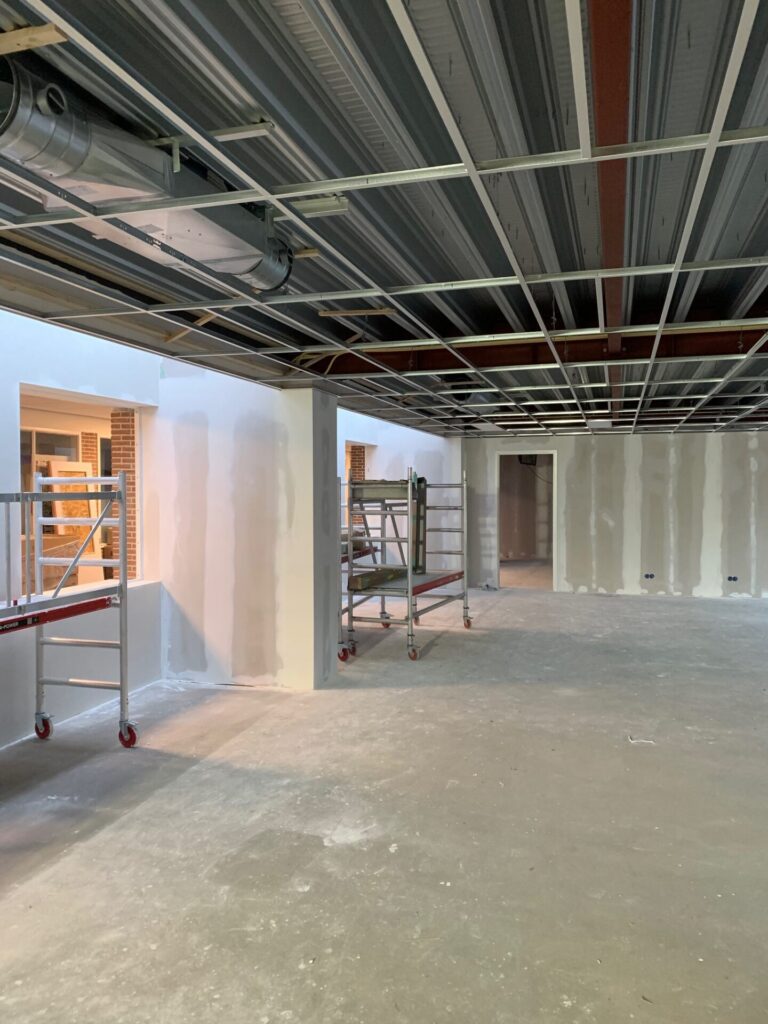Een systeemplafond of strak afgewerkt gips plafond is voor mij de juiste klus.