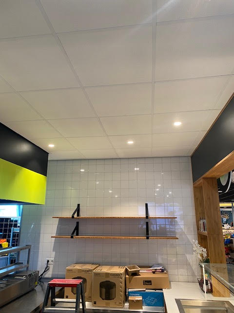 Een systeemplafond of strak afgewerkt gips plafond is voor mij de juiste klus.